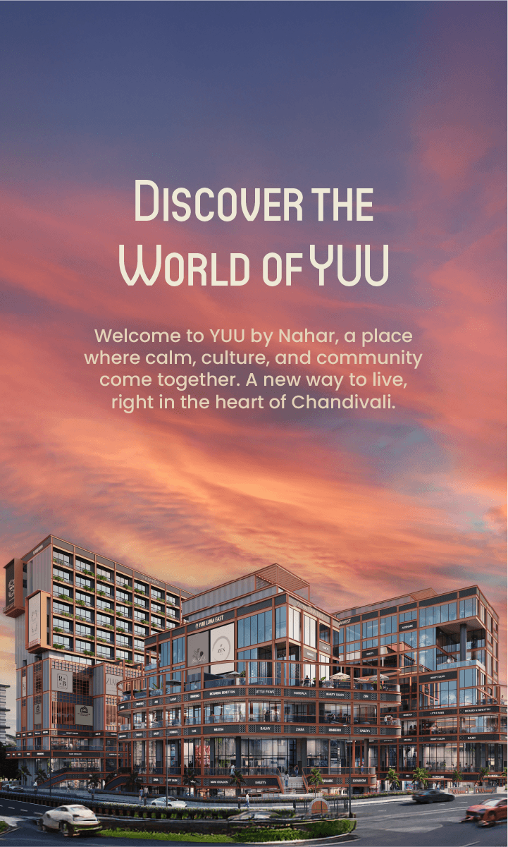Inspired by the dynamic studio living, culture of Japan & Europe, YUU introduces a fresh perspective, to Mumbai’s real estate landscape one that redefines space, structure, and seamless living..